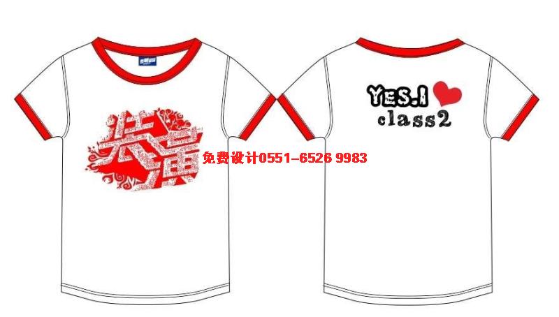 白色鑲紅邊班服,前面是圖案鏤空裝潢專業,后面是YES.1愛心CLASSS 2