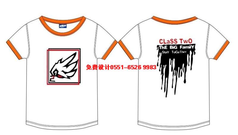 這是紫色的圓領T恤班服,圖案采用白色環保漿料印刷?此苼y,其實是個性張揚的表現。后面是立體數字2
