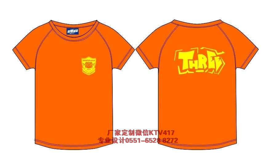 3班班級(jí)T恤衫圖案,這款3班圖案采用的是橙色底衫,印刷黃色的圖案,后面是THREE