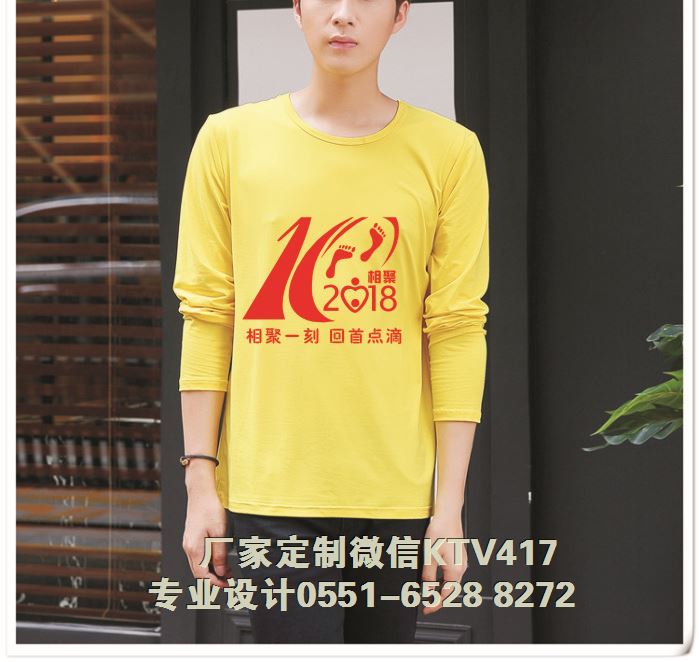 黃色長袖紀念衫畢業10年,秋冬聚會服裝款式。