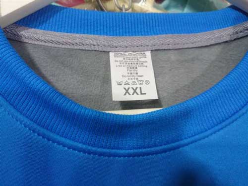 我廠圓領(lǐng)藍(lán)色衛(wèi)衣領(lǐng)口,加絨加厚面料領(lǐng)口特寫: