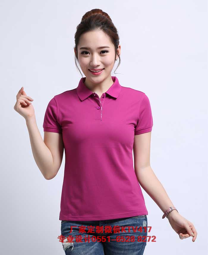 紫紅色翻領T恤衫,這款顏色比較特別,是紫紅色的,既不是紫色,也不是紅色。這個顏色比較高貴。布料染色純正,視覺識別佳。產品定位高端用戶,價格不低。這款是針對服裝定制預算高的客戶設計的。這款衣服印刷黃色的圖案,很上檔次。
