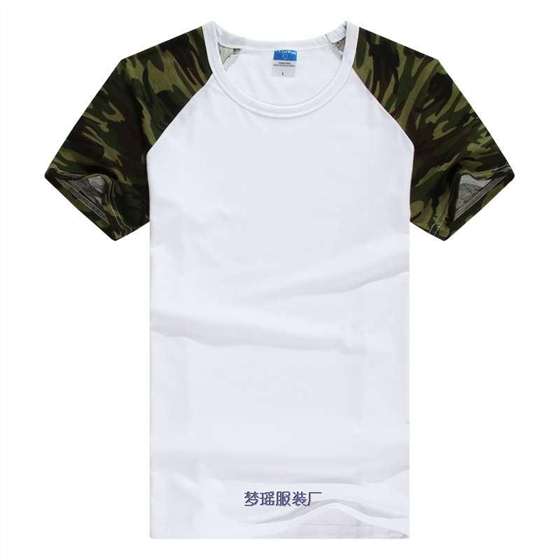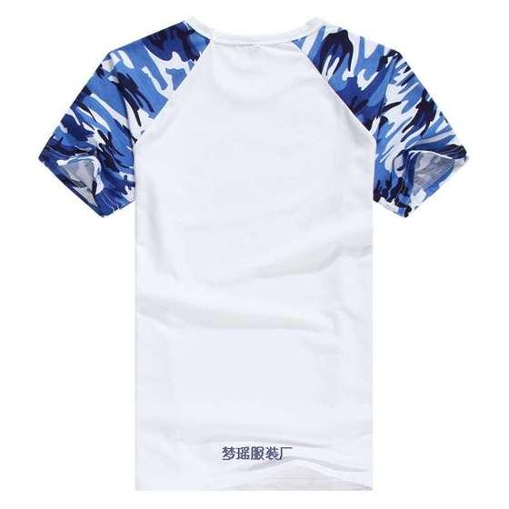 白色底衫藍色迷彩插肩文化衫,空軍撞色迷彩T恤,陸軍藍色迷彩插肩文化衫