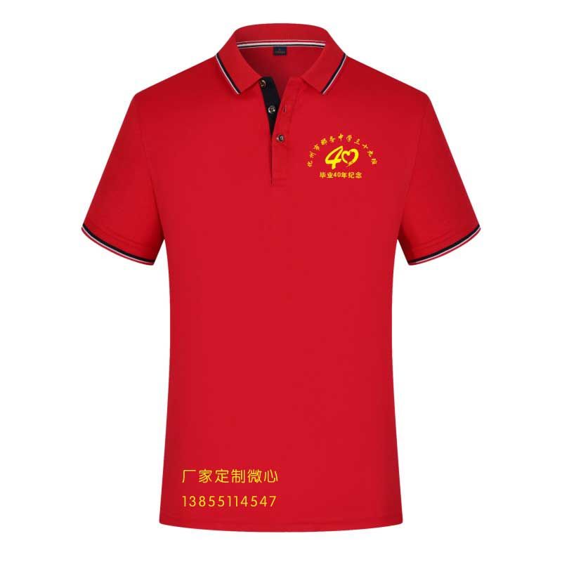 翻領款聚會服裝,相對于圓領服裝,價格高點。適合對服裝款式有要求的聚會班級。常用的翻領服裝顏色也是白色,紅色。