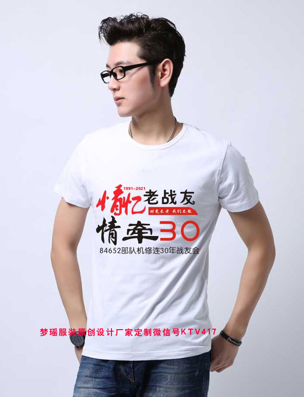 情憶老戰(zhàn)友老兵聚會(huì)衫,老兵聚會(huì)紀(jì)念衫,文化衫定制。和平時(shí)期,想想年輕時(shí)的自己,想見見老戰(zhàn)友了。分別了30年,老戰(zhàn)友們,你們還好嗎?瘦了沒有?還是發(fā)福了?這款老兵聚會(huì)紀(jì)念衫,前面的圖案是紅色的“情憶30”,黑色的老戰(zhàn)友,情牽30年,一句時(shí)光不老,我們不散。是老戰(zhàn)友們的共同寄語(yǔ)。聚會(huì)年限1991-2021,圖案最下面是84652部隊(duì)機(jī)修連30戰(zhàn)友聚會(huì)留念。紀(jì)念衫底衫各種顏色的都有,可以聯(lián)系我廠客服,免費(fèi)設(shè)計(jì)。