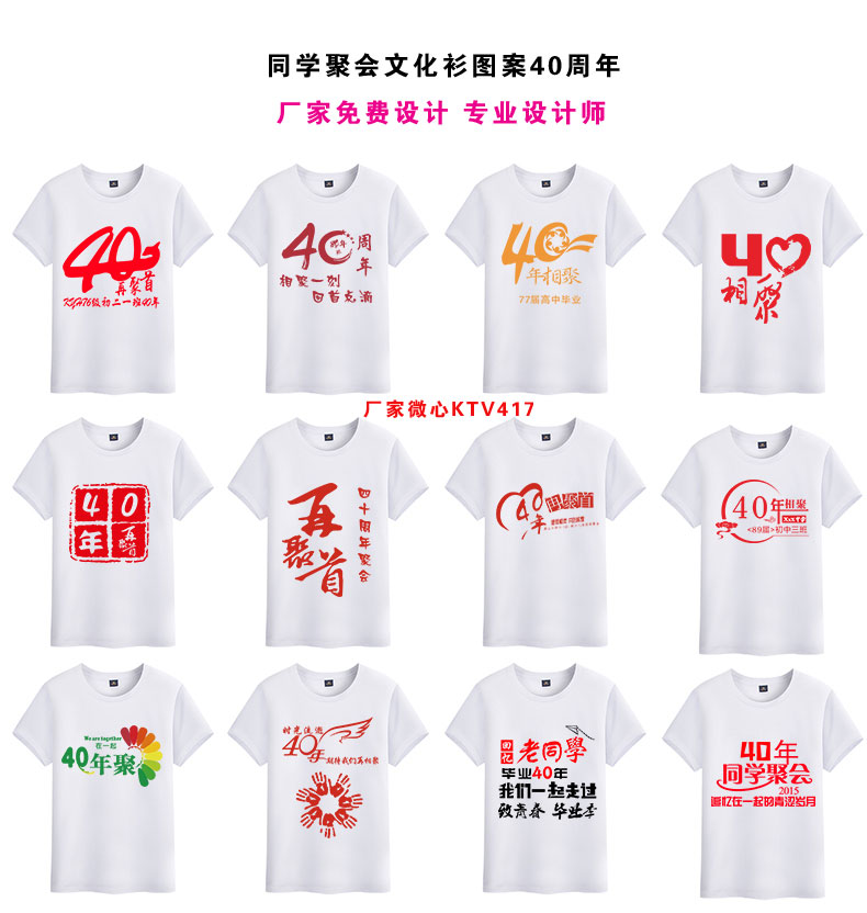 40年同學聚會文化衫定制,畢業四十年同學會服裝圖案設計