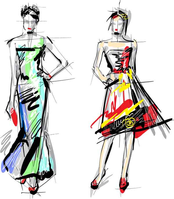 4、經(jīng)過(guò)上述學(xué)習(xí),基本掌握了人體、色彩、款式,下面進(jìn)行人體著衣的效果圖學(xué)習(xí)。
