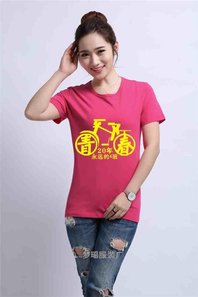 這款同學(xué)聚會(huì)文化衫圖案(致青春)20年,設(shè)計(jì)思路是玫紅色,搭配黃色,玫紅色相比大紅色來說不土,顏色雅。這款致青春20的圖案采用的是致青春變形成自行車,青春兩個(gè)字,分別在2個(gè)圓圈里,代表自行車的2個(gè)輪子,致字變成成自行車的車把和大扛,連在一起就是活生生的自行車。自行車的下面是20年,下面是班級(jí)名稱永遠(yuǎn)的4班。總結(jié):致青春這3個(gè)字,即是字也是圖案,設(shè)計(jì)的甚是巧,可見,我廠設(shè)計(jì)師設(shè)計(jì)水平。