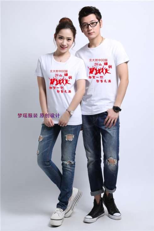 翻領(lǐng)文化衫按常理文化衫的正面印刷小的文字,一般在左胸的位置,圓領(lǐng)文化衫按常理正面印刷大的文字。具體印什么文字?就要看看各班級策劃人員的素質(zhì)了,素質(zhì)高者,印刷文字雅,素質(zhì)不高者,文化衫文字俗。要想讓文化衫的文字好看,高雅。設(shè)計者就要有水準,既要有藝術(shù)靈感,又要有敏銳的眼光,能洞察聚會同學(xué)們的需求和想法,才能把藝術(shù),靈感,需求三合一設(shè)計出好看的文化衫文字。