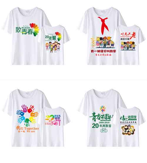 另外,同學聚會文化衫圖案也應考慮母校的榮譽和特色。通過運用校徽、校訓或標志性建筑等校園元素,將同學聚會與學校的榮譽聯系在一起。這樣的設計不僅能展示學校的悠久歷史和優良傳統,也會為同學聚會增添莊重和儀式感。